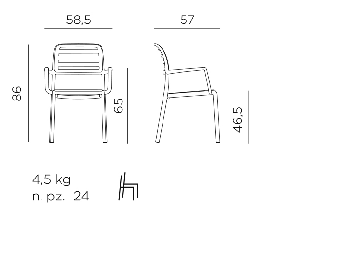 Plastová stohovatelná židle s područkami vyrobena z konstrukčního kompozitu polypropylenu zpevněným skelným vláknem. Protiskluzné pryžové koncovky zaručí bezpečné používání na libovolném povrchu.