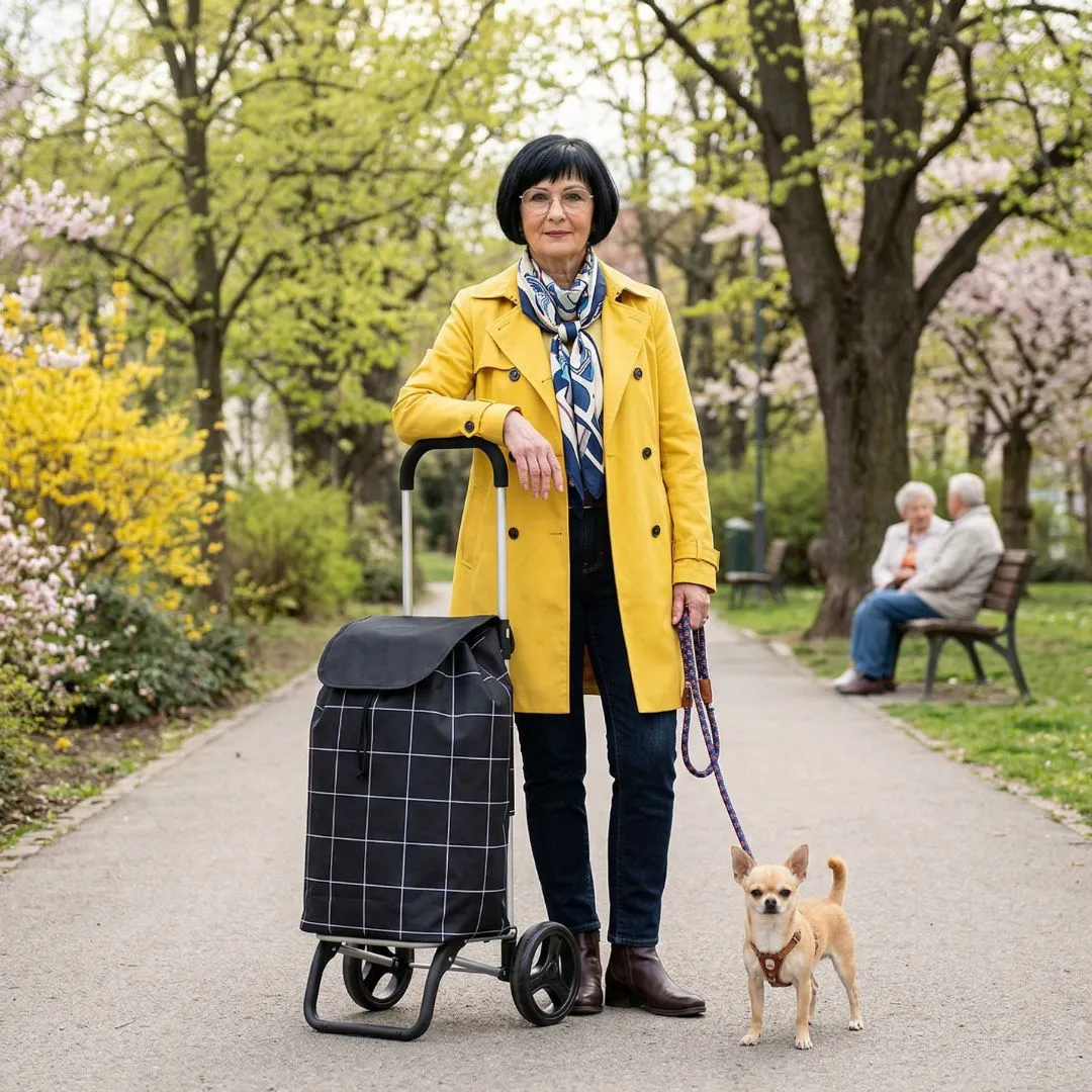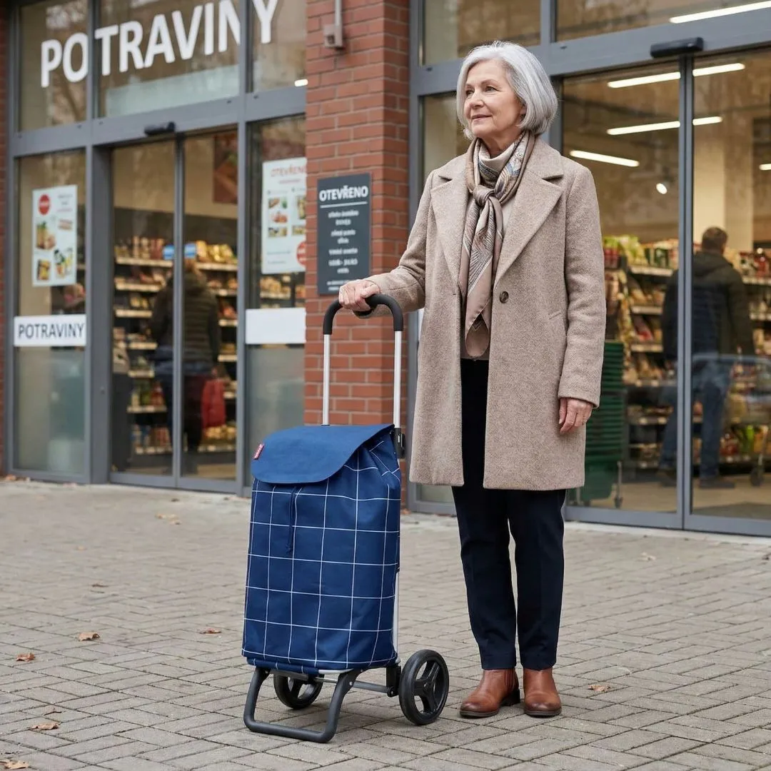 Tato nákupní taška s lehkým hliníkovým podvozkem je vyrobená pro vaše maximální pohodlí. Textilní bag z odolné polyesterové tkaniny je voděodolný a snadno omyvatelný. Praktický horní lem lze jednoduše stáhnout šňůrkou a zajistit klopnou pro ochranu obsahu. Ergonomické madlo si můžete nastavit do jedné ze dvou výškových poloh pro co nejjednodušší manipulaci. Na zadní straně najdete zipovou kapsu a praktický závěs na upevnění tašky k nákupnímu vozíku. Nárazuodolná kolečka vyrobená z kvalitního EVA kopolymeru zaručují tichý a hladký pohyb. Jsou snadno odnímatelná a díky pečlivé konstrukci nedrncají ani na nerovném povrchu. Taška je lehká, snadno ovladatelná a ideální pro každodenní nákupy.
